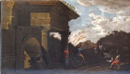 Dipinto olio su tela Rovine architettoniche con figure Ascanio Luciani ( Napoli , 1621 - Napoli, 18 agosto 1706) Bibliografia di riferimento: Viviano e Niccolò Codazzi . Jandi Sapi editore Pag. 489 (museo di Capodimonte)