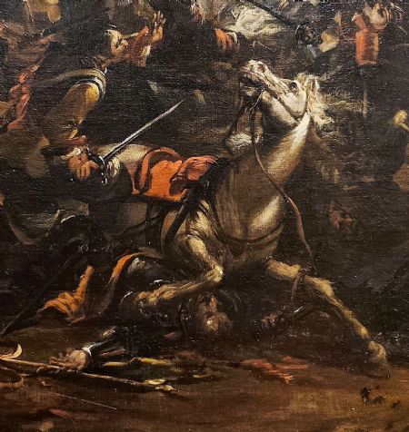 Scena di battaglia Olio su tela cm 118x197,5 con cornice Francesco Monti detto il brescianino delle battaglie