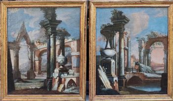Coppia di capricci architettonici Olio su tela cm 40x33 Gaetano Ottani (Bologna, 29 marzo 1720 - 1724 – Torino, 14-15 gennaio 1801)