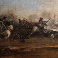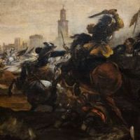 Scena di battaglia Olio su tela cm 118x197,5 con cornice Francesco Monti detto il brescianino delle battaglie